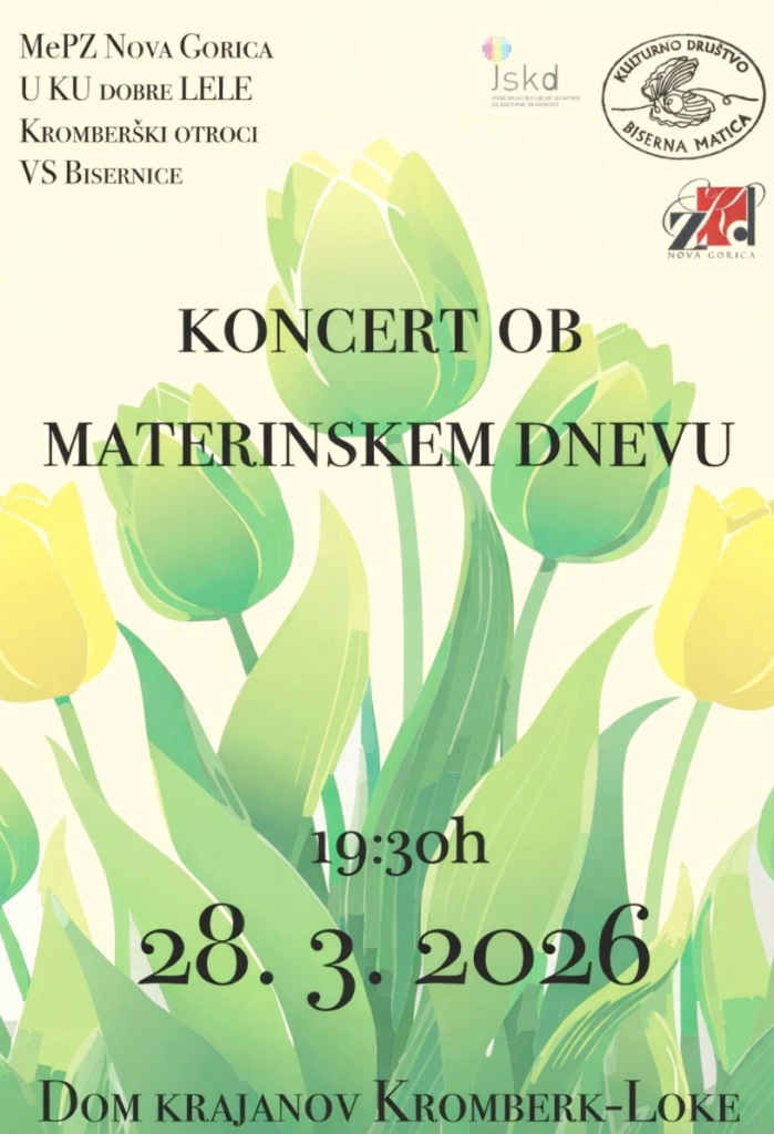 Koncert ob materinskem dnevu Pustite komentar / Novice in dogodki Vabljeni na koncert ob materinskem dnevu v dom krajanov Kromberk-Loke 28.3.2026 ob 19:30.
